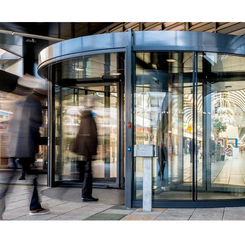 The Tournex high capacity revolving door is an example of a classic revolving door. It has many of the same advantages and the same versatility as our Tourniket revolving door but can handle higher capacity applications such as healthcare facilities, universities and airport terminals. The Tournex is available with three or four-door wings and in a variety of different finishes and colours and with its proven technology, the Tournex is often used as the basis for stunning special design projects.