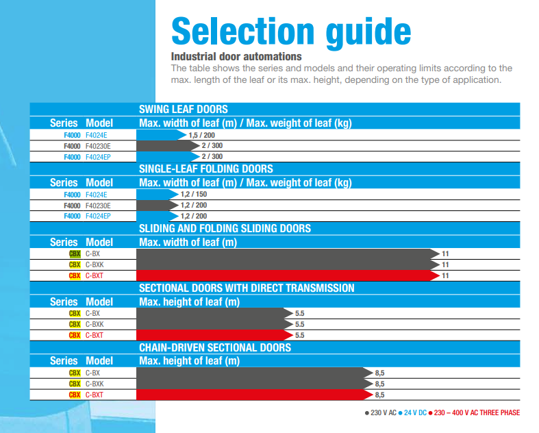 • Saadaval mootor 230-400V on töötav 3-faasilisel vahelduvvoolul, varustatud impulsianduriga suurema veojõu ja maksimaalse ohutuse tagamiseks