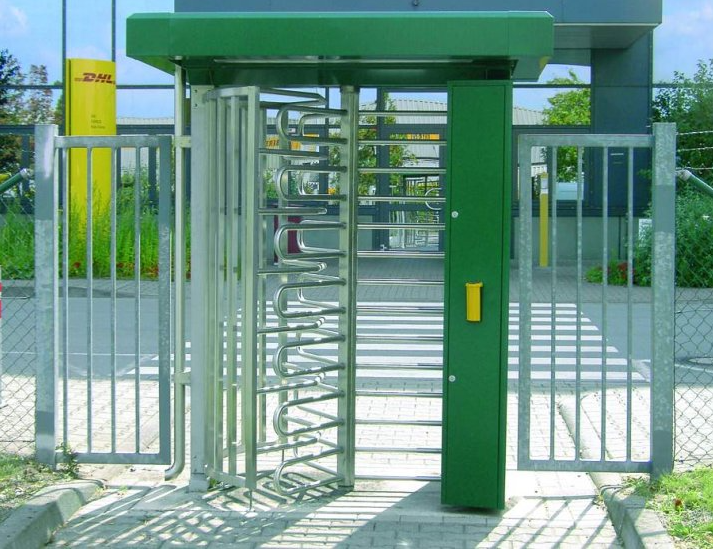 The Ecco 120 BB motorized portal turnstile with stainless steel drum, barrier grate, guides and feet is especially well suited for outdoor plant access control as well as for stadiums, recreation facilities and garage-to-building transitions.