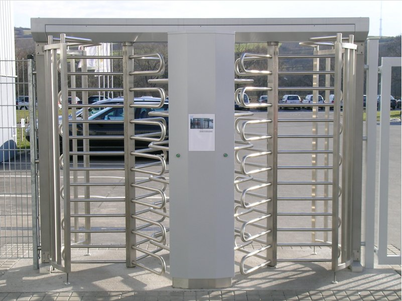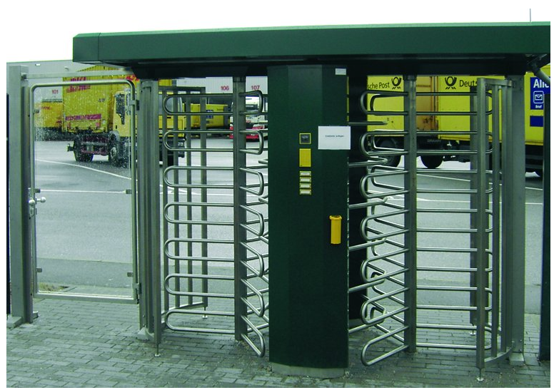 The Ecco 120 BD motorized double portal turnstile with stainless steel drum, barrier grate, guides and feet is especially well suited for outdoor plant access control as well as for stadiums, recreation facilities and garage-to-building transitions.