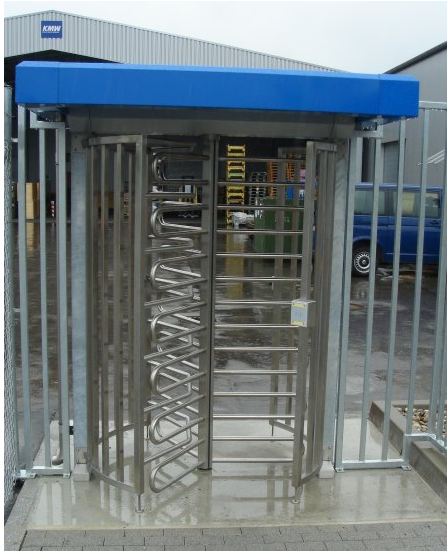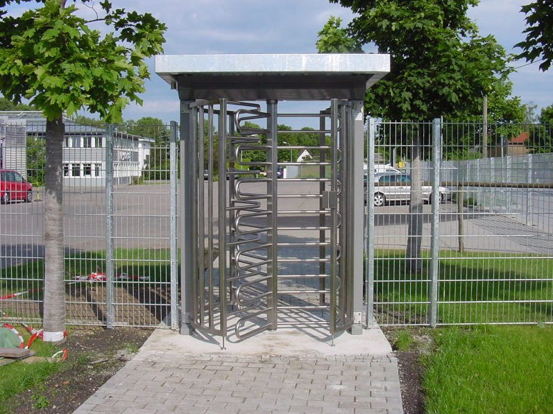 The Ecco 120 BE motorized portal turnstile with stainless steel drum, barrier grate, guides and feet is especially well suited for outdoor plant access control as well as for stadiums, recreation facilities and garage-to-building transitions.
